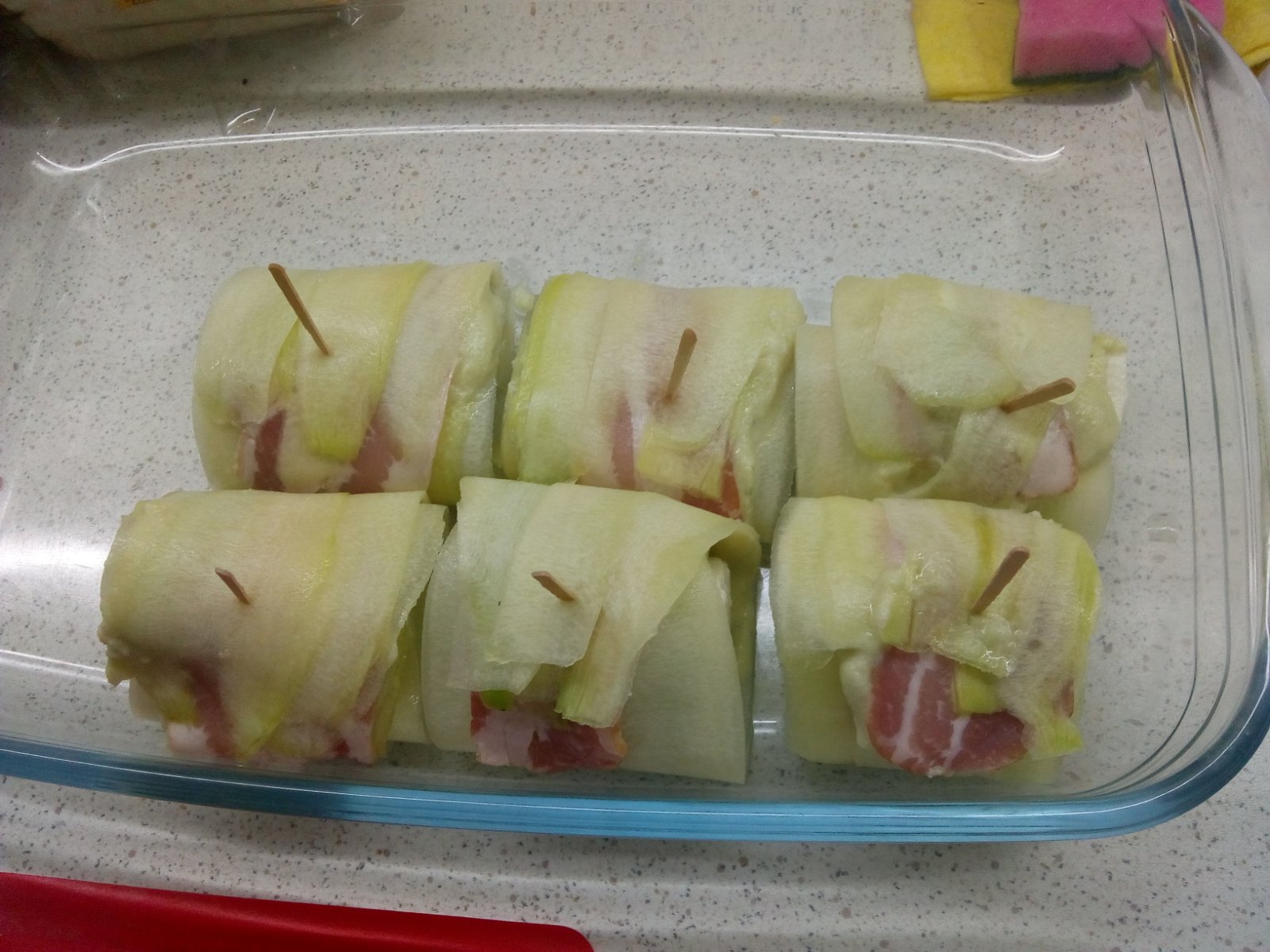 @domichrumi Je to veľmi jednoduché, recept mám z netu... Skrabkou na zemiaky urobís z cukety také pláty, ktoré poukladás na dosku, na to dás slaninku, ja som potrela takou zmesou (bryndza+cesnak+karicka) a polozis na to kus mozarelly, zrolujes a zaistís sparatkom. poukladas do misy a das zapiect (ja som dala cca 15-20 min na 180C).. hotovo..