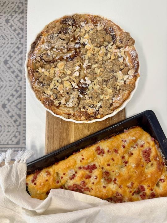 Dnešná kysnutá nedeľa 🥰 Jedno jemnučké cesto a dva druhy – slaný cesnakový so slaninou a sladký hruškový so škoricovoi mrveničkou 🍐