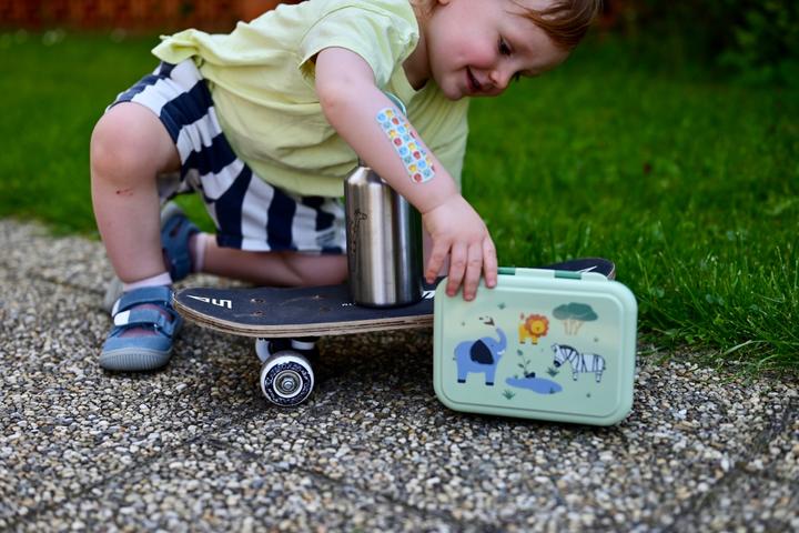 Sotva rok to chodí, ale najradšej by to už na skateboarde behalo. To je náš Max 🥰😁 Potom aj tie nohy a kolená tak vyzerajú. Nebojácnosť mu veru nechýba 🙌 A tieto novinky #babylove v štýle divokých safari zvierat ho úplne vystihujú 😁🫶