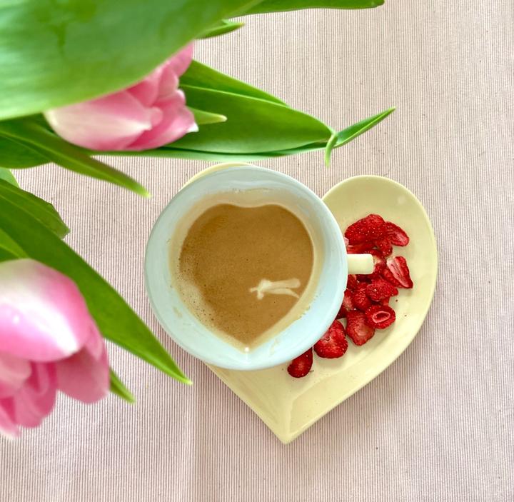 „Mami, už si mala kávu?” „Ešte nie, zlatko.” Ticho, iba príkaz, aby som nešla do kuchyne. O pár minút neskôr mi priniesol toto 😍 Že aby som si ju vychutnala. Aj so sušenými jahodami #babylove, lebo minule som vravela, že mi chutia. A že v srdiečkovej šálke, lebo je to z lásky ❤️ Rátam, že tak do hodiny ma privedie kvôli niečomu do vývrtky, ale je to všetko v rovnováhe 🥰