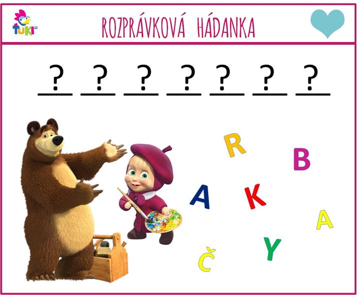 Krásne ránko 🙂 Tento raz bude prebúdzačka za 2 #srdiecka ❤ spočívať v tom, že z písmeniek na obrázku treba poskladať slovíčko, ktoré má niečo spoločné s rozprávkou "Máša a medveď" 🙂 Ak sa vám príbehy o tejto malej výmyselníčke a jej kamošovi medveďovi páčia, stačí prepnúť o 19:15 na Ťuki TV 🙂 Prajem pekný deň 🙂