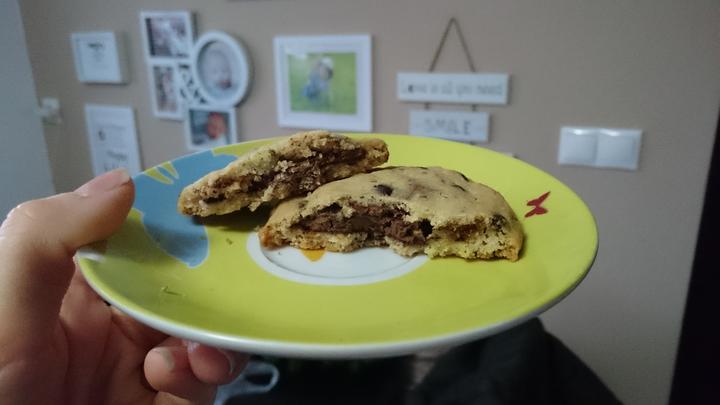 Roztopíme maslo, pridáme cukor a premiešame. Pridáme vanilku, studené vajíčko, studené žĺtko a miešame, kým nezískame krémovú konzistenciu. V miske si zmiešame múku so sódou bikarbónou a pridáme ju k cestu. Nakoniec zapracujeme čokoládu, ktorú si nožom nakrájame na malé kúsky. Hmotu som dala poriadne stuhnúť do chladničky.