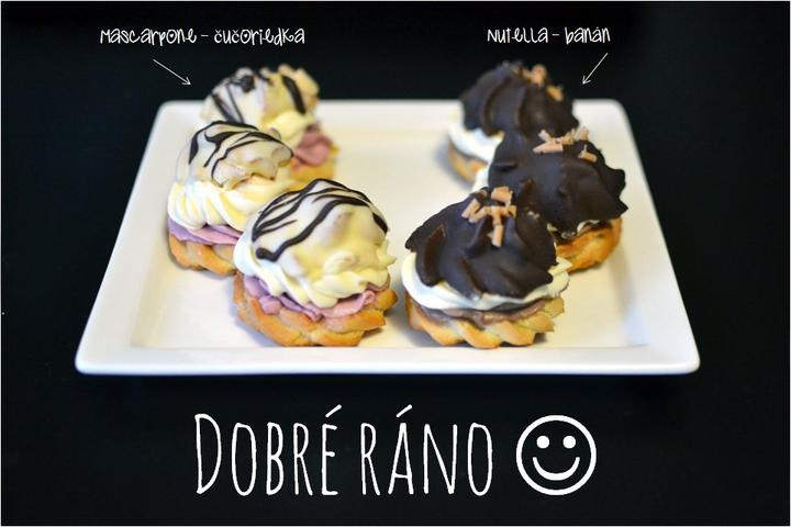 Tu druhu som rozdelila opat na polku - do jednej som primeisala nutellu a do druhej pomixovanie cucoriedky.