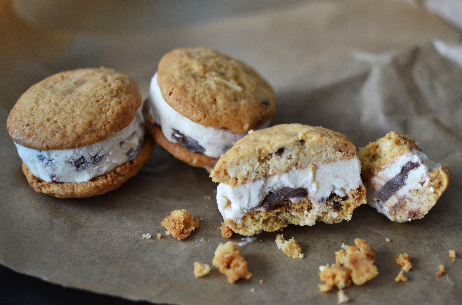 Vanilkovu zmrzlinu som robila v zmrzlinovaci, ale pokojne mozete pouzit aj kupovanu. Taku zmaknutu zmrzlinu som dala v tenkej vrstve do dozy, na ktorej spodok som dala papier na pecenie. Robila som to tak, ze som dala tenucku vrstvu zmrzlinu, na to som kladla kopky Nutelly a lyzicou som prikryla dalsou zmrzlinou. Nechala som zmrazit. Nasla som si formicku, ktora velkostne sedela s velkostou cookies. Vykrojila som zo zmrzliny kruzky a vlozila ich medzi cookies 🙂