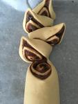 Vlažnú vodu s lyžičkou cukru a sušeným droždím necháme tak 10min postáť, kým sa nespraví kvások. V mise zmiešame všetky suroviny, pridáme aj kvások a vypracujeme hladké cesto. Dobre a dlho miesime. Necháme podkysnúť. Vyvaľkáme natenko do tvaru obdĺžnika. Potrieme slivkovým lekvárom a Nutellou (nemusíte dať obe, no u nás mala táto kombinácia úspech). Zrolujeme, preložíme na plech s papierom na pečenie, spojom dole. Nožnicami strihneme tak, že cesto neprestrihneme, ale spodok necháme spojený a vytočíme do strany. Vždy na striedačku do jednej a do druhej farby. Pridám fotku pre lepšiu predstavivosť 🙂 Pred pečením potrieme vajíčkom rozmiešaným s troškou mlieka a pečieme v rúre predhriatej na 175°C dozlatista.