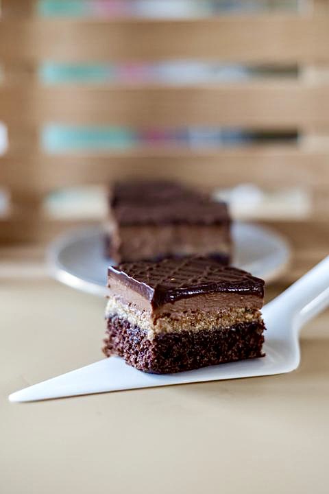 Maslo necháme zmäknúť, pridáme polovicu práškového cukru a po jednom 4 žĺtky. Múku, pomleté vlašské orechy, preosiate kakao a kypriaci prášok premiešame. Do maslovej zmesi pridáme zmes múkovú, nakoniec zľahka vmiešame bielky, ktoré sme si vyšľahali zo zvyšným práškovým cukrom. Pečieme pri teplote cca 170°C a cca 25 -30 minút na plechu 30x30 cm.
