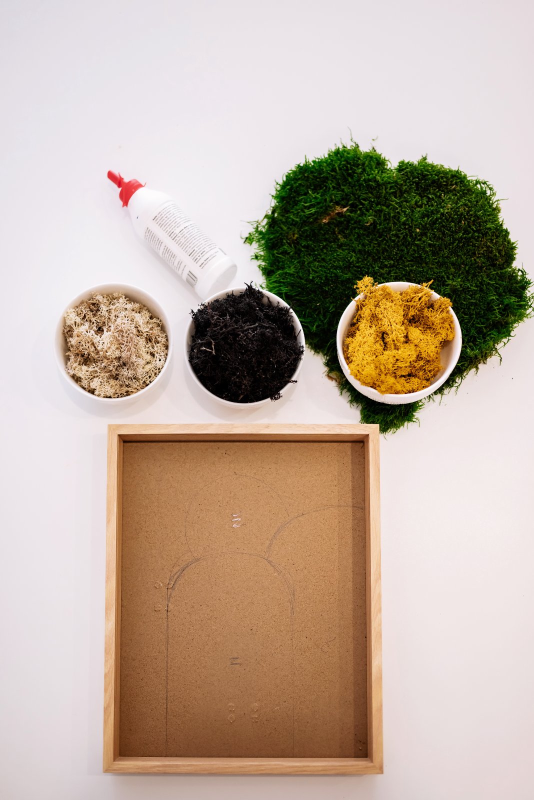 Krok 2: Predtým, ako začnete mach lepiť, premyslite si, ako ho budete umiestňovať, aby konečný výsledok vytvoril harmonický celok. Ak plánujete vytvoriť určitý motív, pokojne si vzor predkreslite.