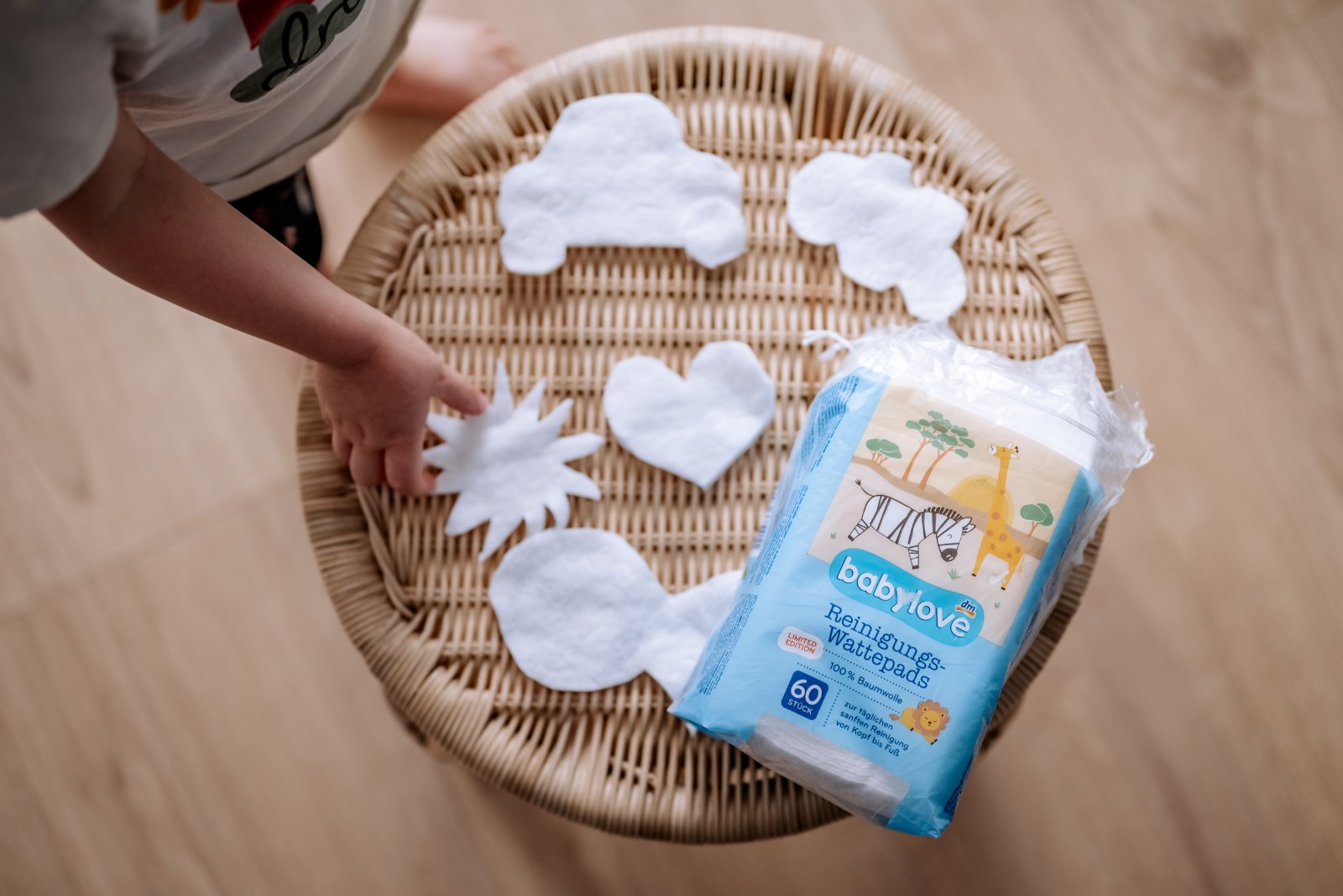 I keď leto klope na dvere a čoraz viac času trávime vonku, stále sú u nás rôzne kreatívne aktivity viac ako vítané. Preto sme sa pred pár dňami rozhodli vyskúšať túto aktivitu, ktorú sme si tak trochu prispôsobili na mieru. Niekoľkokrát som videla použité klasické, okrúhle vatové tampóny. A keď mi moje oči zastali na veľkých vatových #babylove tampónoch, presne som vedela, na čo ich použijeme. Zobrala som nožničky, vystrihla zopár jednoduchých tvarov a voilà, naše umelecké dielo bolo na svete.