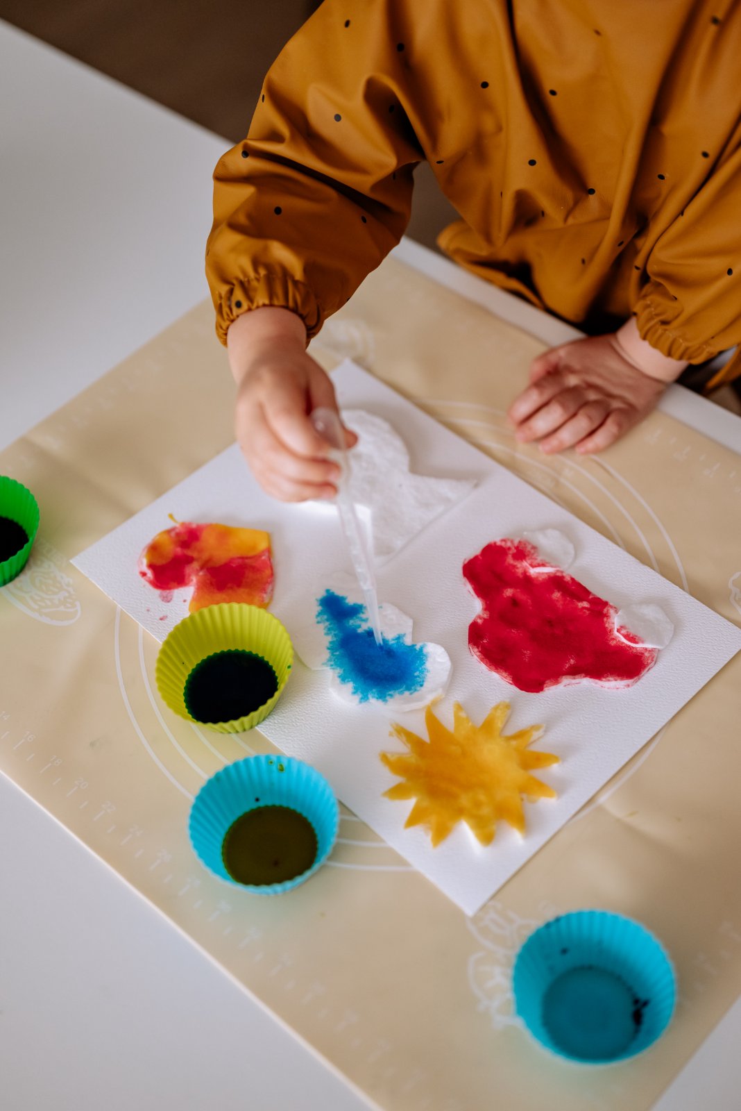 Vodové farby a pipeta - to je kombinácia, ktorá mala u nás rozhodne úspech. Táto aktivita je zábavná, navyše je to skvelý spôsob, ako experimentovať s absorpciou vody a naši najmenší si precvičia jemnú motoriku. Pridajte k tomu učenie farieb, prípadne si vymyslite na obrázok rozprávku či básničku a posuňte tento projekt na ďalšiu úroveň. Nechajte sa inšpirovať, popustite uzdu fantázii a pokojne vyskúšajte na vlastných tvaroch túto metódu maľovania.