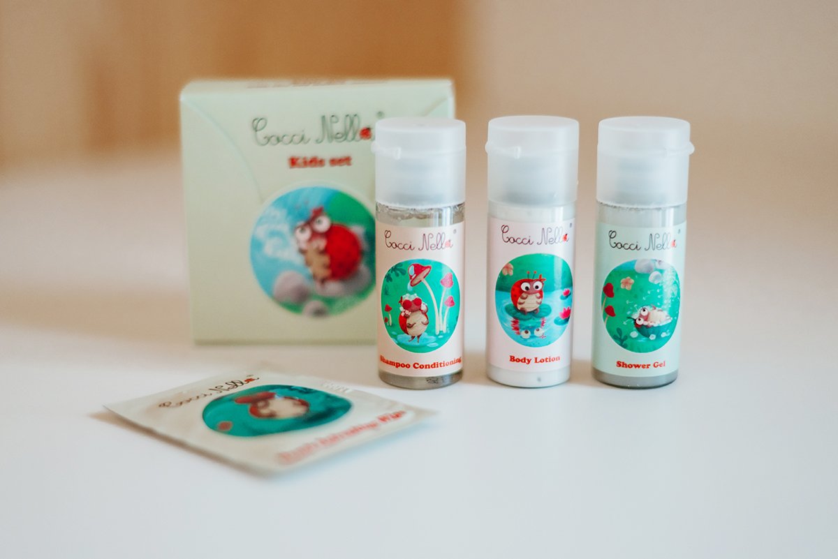 Taktiež bolo veľmi milé, že na malých hostí čakala v kúpeľni hygienická sada kozmetických prípravkov. Maličkosť, ktorá spraví veľkú parádu. A zároveň si môžete odškrtnúť nutnosť zaobstarať nejaký suvenír. Aspoň u nás to prešlo. :D
