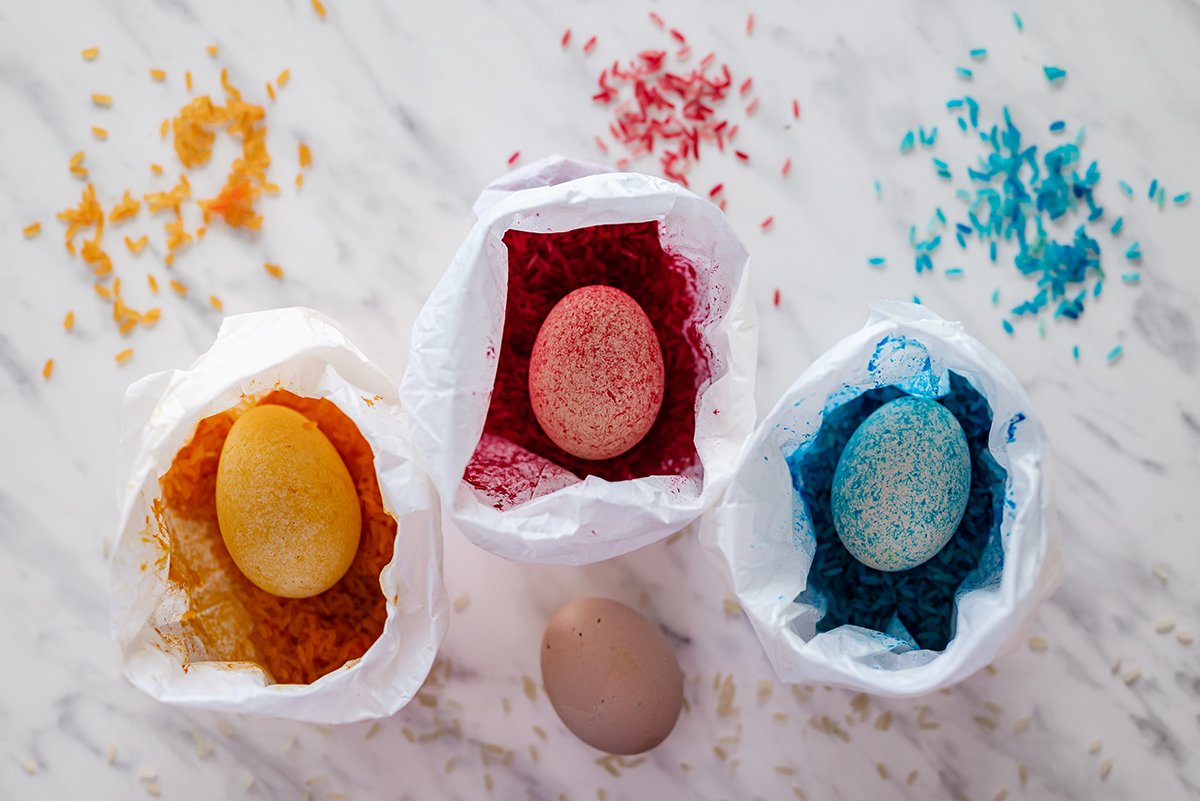Zdobenie vajíčok je tradičná aktivita, ktorá zabaví snáď každé dieťa. Existuje veľa metód, od tých tradičných, akými je zdobenie voskom či prírodnými farbami, až po zdobenie nálepkami či farbenie ryžou. Ak ste vajíčka ryžou ešte nefarbili, odporúčam. Je to jednoduché, rýchle a hlavne - nie je z toho neporiadok a všetko ostane čisté. 🙂