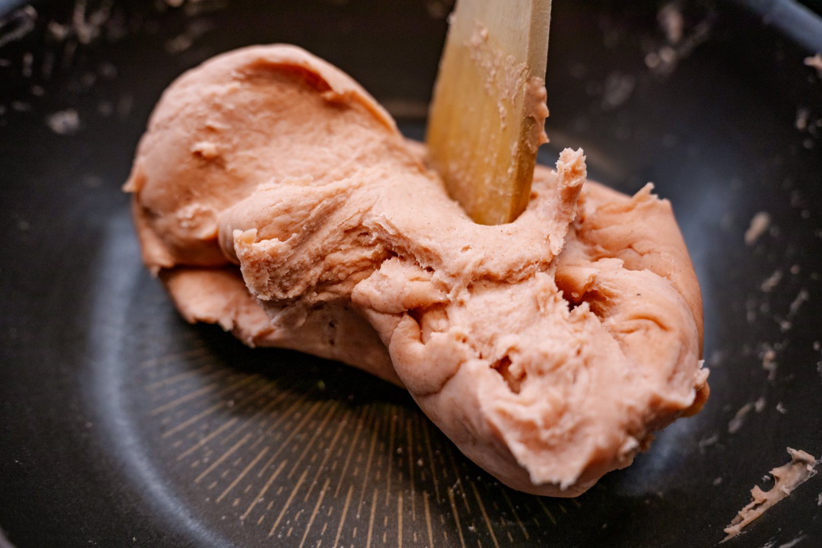 - Keď sa hmota spojí do jedného kompaktného „bochníka“ a oddeľuje sa od stien hrnca, je hotová.