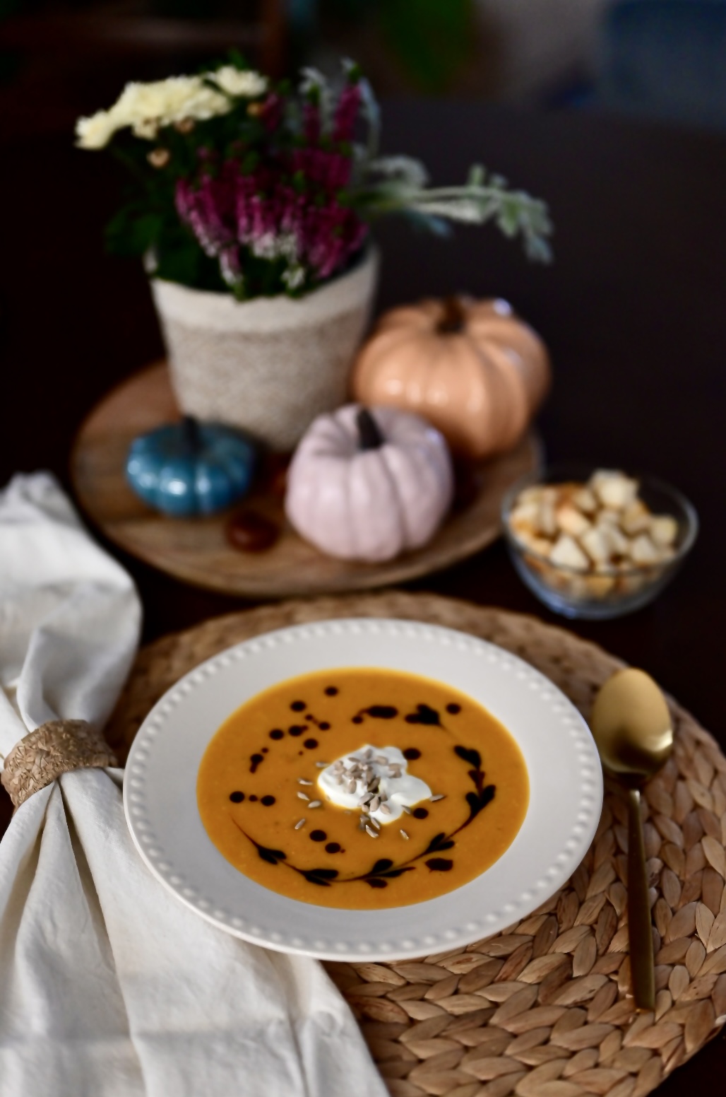 Ako vyzerá jeseň na tanieri? Pre mňa takto 😍🍁 Tekvicová polievka so smotanou, balsamicom, tekvicovým olejom a slnečnicovými semienkami 🤎
