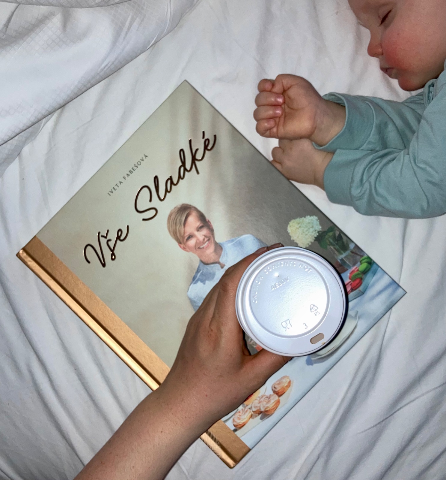 Chcela som si dať kávu a koláč niekde na teraske s výhľadom na podvečernú Prahu. Tento drobec však dával celý deň ako turista na pána, tak bol už unavený. Kávu som si preto zobrala so sebou, namiesto koláča tento môj knižný úlovok cukrárskej špičky a užívam si na izbe ešte krajší “výhľad” ❤️