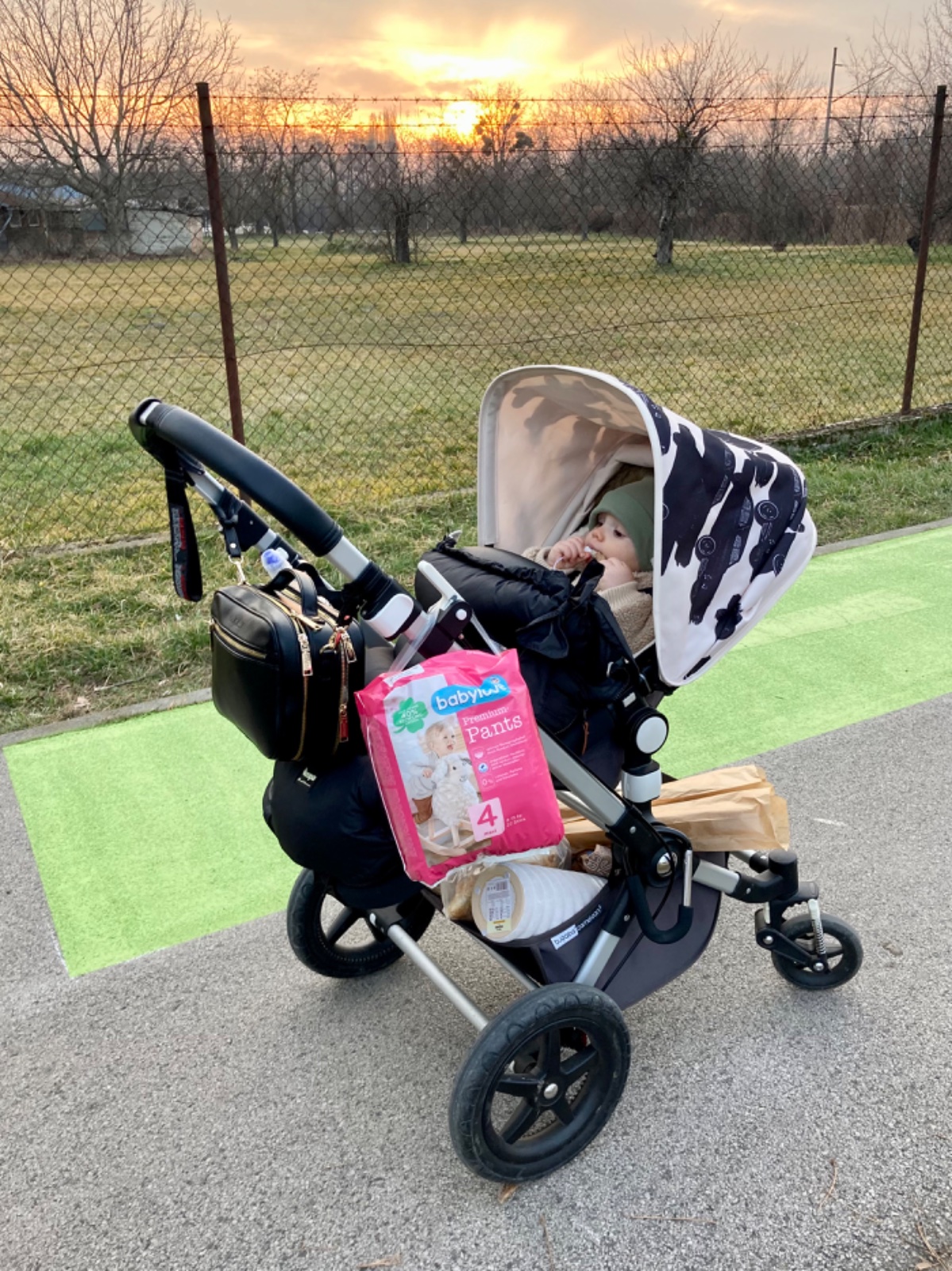 So synčekom každý deň aj dvakrát, s dcérkou tak isto. Ja sa zase musím premáhať niečo doma robiť, radšej sa vyhovorím, že som "musela" ísť vonku, lebo deti chceli. Chodíme za každého počasia, dcérka zatiaľ pozoruje z kočíka, synček už v kočíku len spí, alebo keď nakupujem. A tiež chodím takto ovešaná nákupom, aj keď mám veľký košík pod kočíkom. 😀