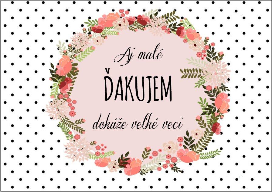 Ahojte 🙂 Dakujem krasne, ze ste si nasli chvilku a podakovali sa. Ako som uz pisala, verim, ze pri ludoch, ktori vedia byt vdacni, stoji stastena 🙂 Budte teda nadalej taki vdacni a stale viac a viac stastni a spokojni. Prajem vam krasny vecer a idem sa pustit do srdieckovania ;)
