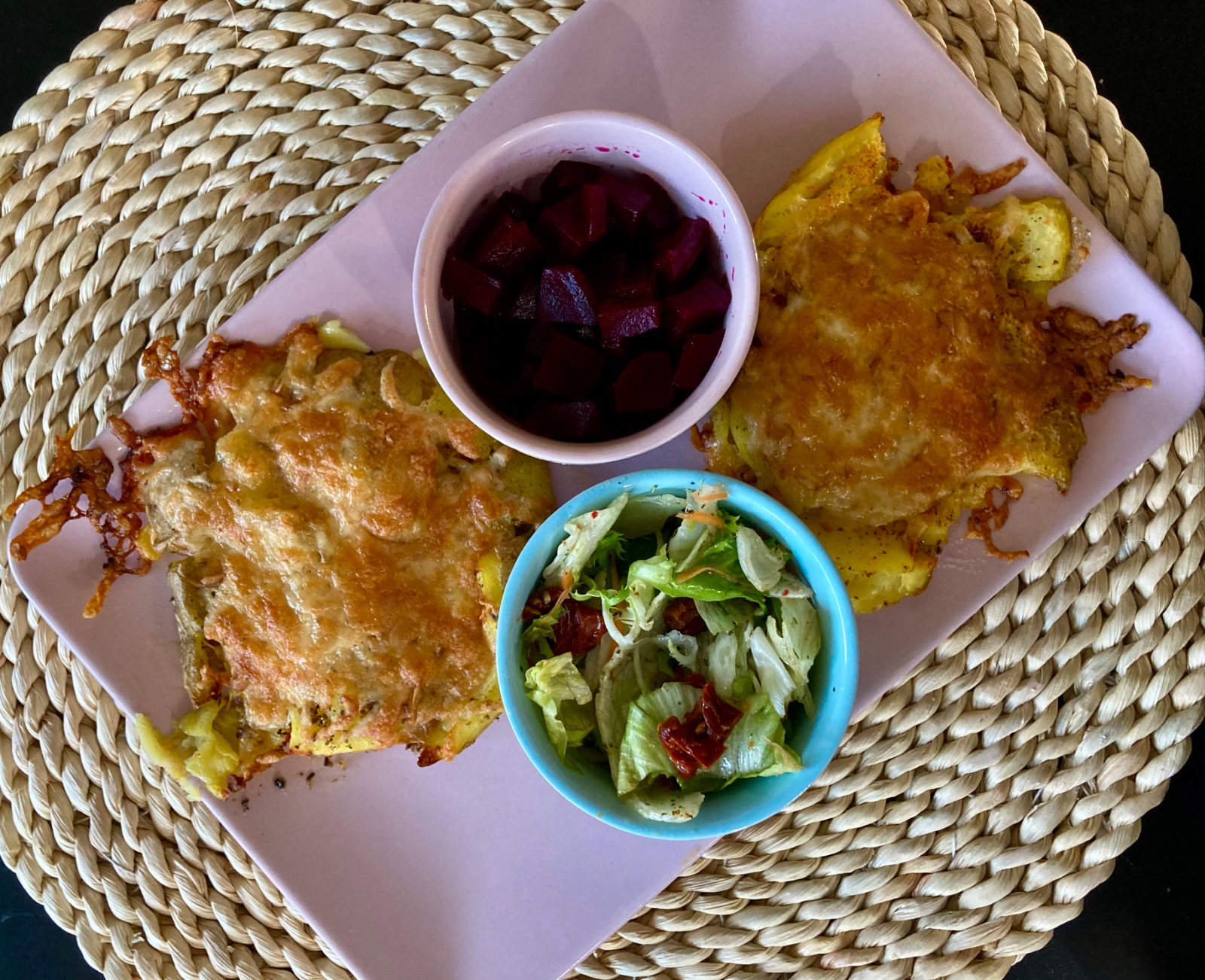 Dnes taká rýchla obedovečera, ktorá je zbúchaná za chvíľu a bez veľkého bordelu v kuchyni 🙊😁 Ideálne 👌 Popučené zemiaky upečené dochrumkava so syrom a parmezánom ☺️