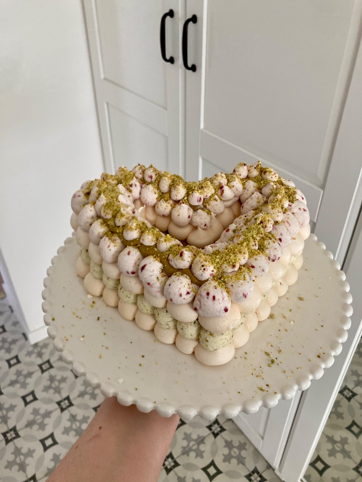 Dnešná srdiečková pistáciovo-malinová pavlovka ❤️ Pôvodne mali ísť navrch ešte maliny, ale akosi sa záhadne zdegustovali skôr, ako sa stihli dostať na tortu 🤭😄