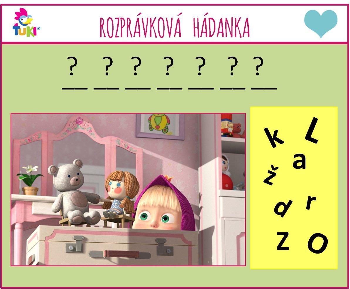 Pokúste sa z neposlušných písmeniek poskladať slovo, ktoré má niečo spoločné s obrázkom z rozprávky Máša a medveď 🐻 Pozor, zatúlalo sa nám tam aj jedno písmenko, ktoré je navyše 🙂