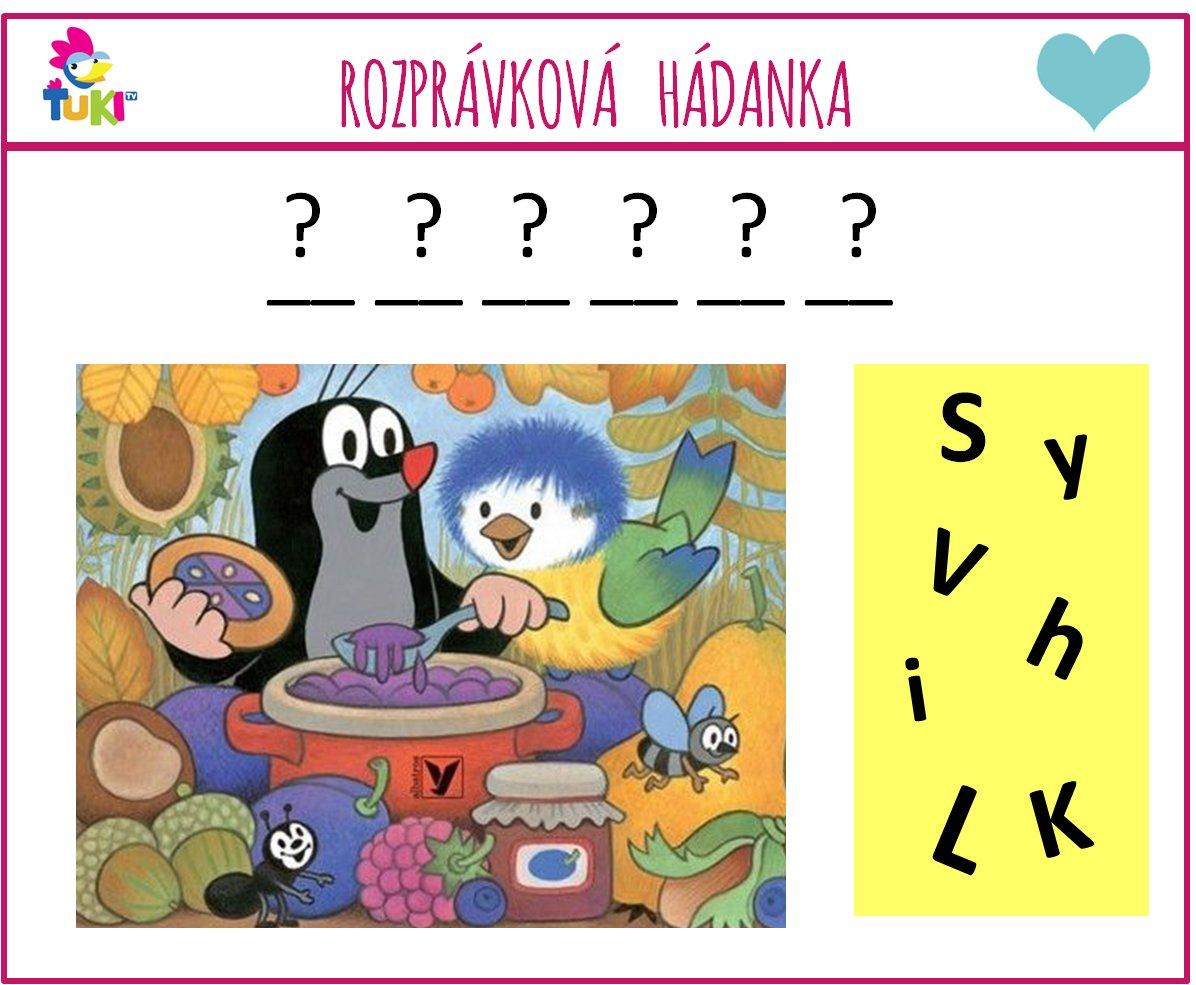 Tentoraz na vás čaká obrázok z rozprávky Krtko a neposlušné písmenká, ktoré sa rozutekali 🙂 Podarí sa vám ich správne usporiadať a vytvoriť tak slovíčko, ktoré má s obrázkom niečo spoločné? 😉 Pozor, priplietlo sa nám tam jedno písmenko, ktoré k slovíčku nepatrí 🙂