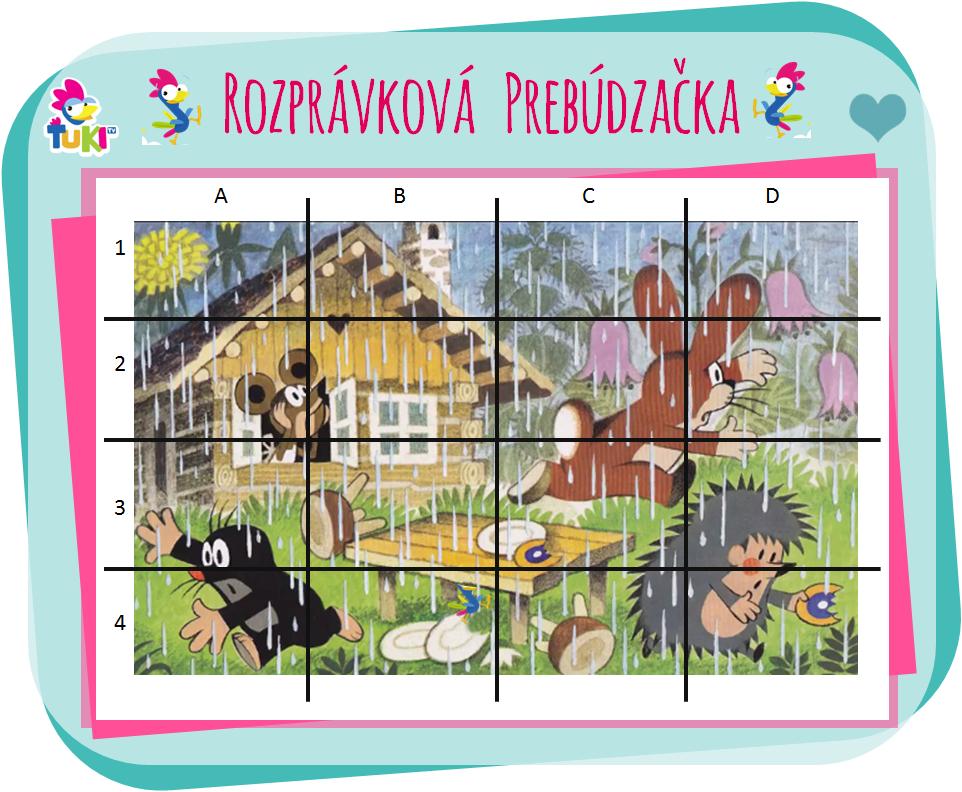 Dobré ránko 🙂 Prebúdzačka za 2 #srdiecka pre bystré oči nechýba ani dnes 💙Kohútik Ťuki s kamarátmi z rozprávky Krtko sa snažia skryť pred dažďom 🙂Podarí sa vám nájsť Ťukiho? 😉
