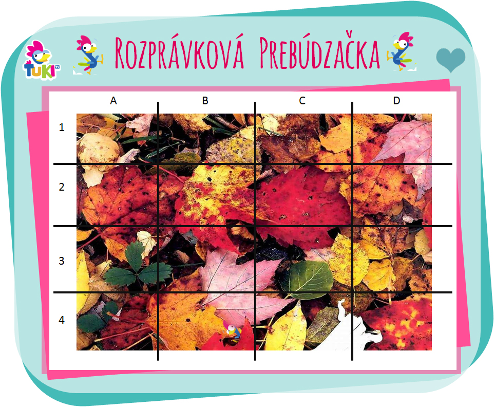 Dobré ránko 🙂 Prebúdzačka za 2 #srdiecka pre bystré oči už čaká 💙Kohútik Ťuki usilovne pracoval a hrabal lístie, až sa v ňom akosi stratil 🍁Nájdete ho? 😉