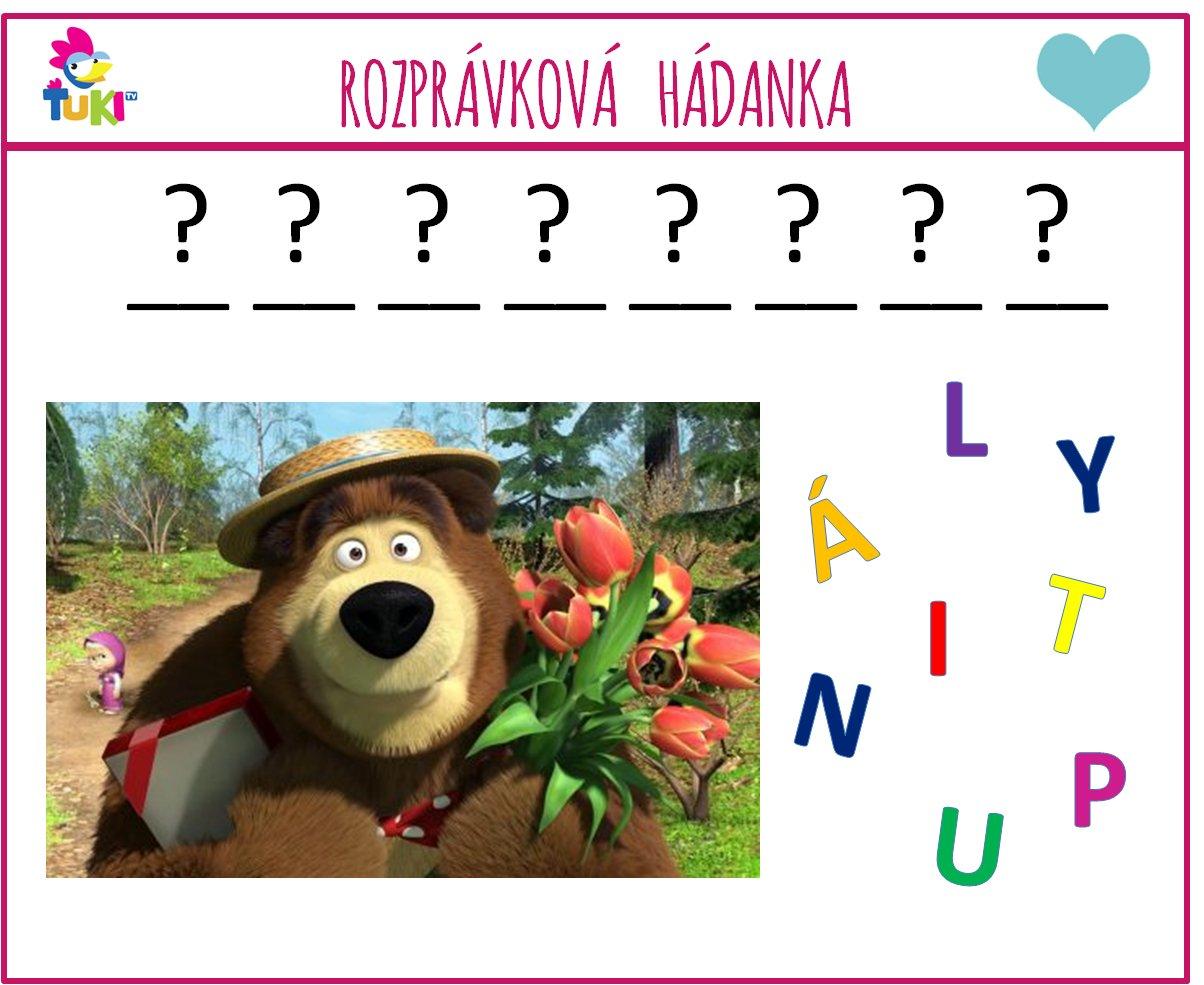 Dobré ránko 🙂 Poďte sa dnes naštartovať s písmenkovou prebúdzačka za 2 #srdiecka ❤ Stačí vyskladať z písmeniek slovíčko, ktoré má niečo spoločné s obrázkom z rozprávky "Máša a medveď", ktorú môžete sledovať na Ťuki TV každý deň 🙂#magio_tv, #tuki_tv