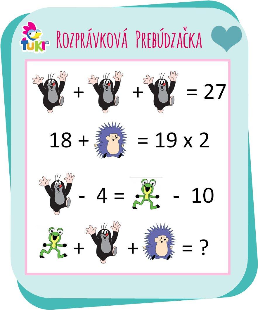 Dobré ráno prajem 🙂 Streda - počítať treba 🙌Ani dnes nechýba matematická prebúdzačka za 2 #srdiecka 💙Poďte si s postavičkami z rozprávky Krtko trošku rozhýbať mozgové závity 🙂