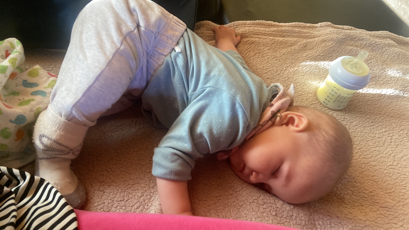 Poloha "hore zadkom" bola aj naša obľúbená + poloha "hore nohami" to si vykladal nohy na stenu, vôbec nechápem, ako tak mohol spať. Zadok pri stene a nohy opreté rovno hore na stene......a to ani nehovorím, aké polohy dokáže teraz, keď je väčší.....mohla by som vydať kalendár 😂