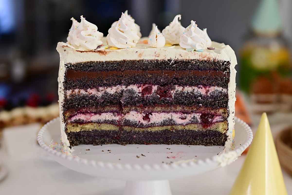 Freestyle vnútro torty - také máme najradšej 😁 Makový korpus, orechové korpus, maková plnka, svieža mascarpone s višňami, čoko ganache a višne ☺️
