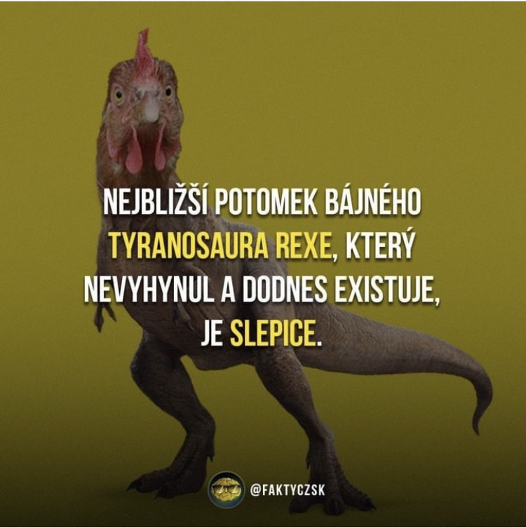 Môj syn je dinomaniak. A v jednej encyklopédii je normálne vedecký text, že potomkami dinosaurov sú práve sliepky. Tak sme sa smiali, že vyriešili záhadu, čo bolo skôr - sliepka alebo vajce = dinosaurus 🤣