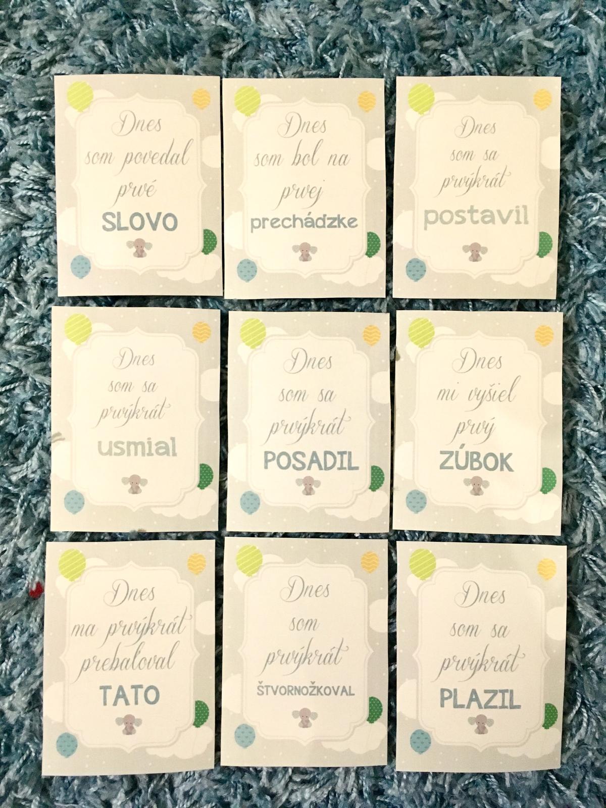 K "výmesačným" kartičkam som nášmu novému rodinnému miničlenovi spravila aj kartičky ďalších významných míľnikov ☺️ Už sa teším na fotky krpca s kartičkami 📸 Lebo veď fotiek nie je nikdy dosť ;)