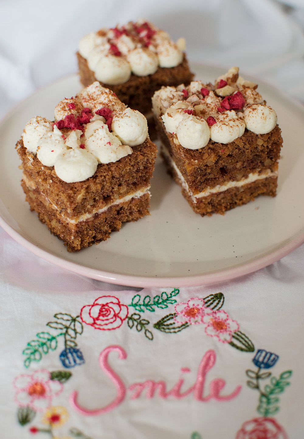 Všetky sypké ingrediencie zmiešame. Vajcia s cukrom vymiešame dopenista, pridáme sypké ingrediencie a olej. Nakoniec primiešame orechy a mrkvu (po nastrúhaní z nej trošku vytlačte šťavu).