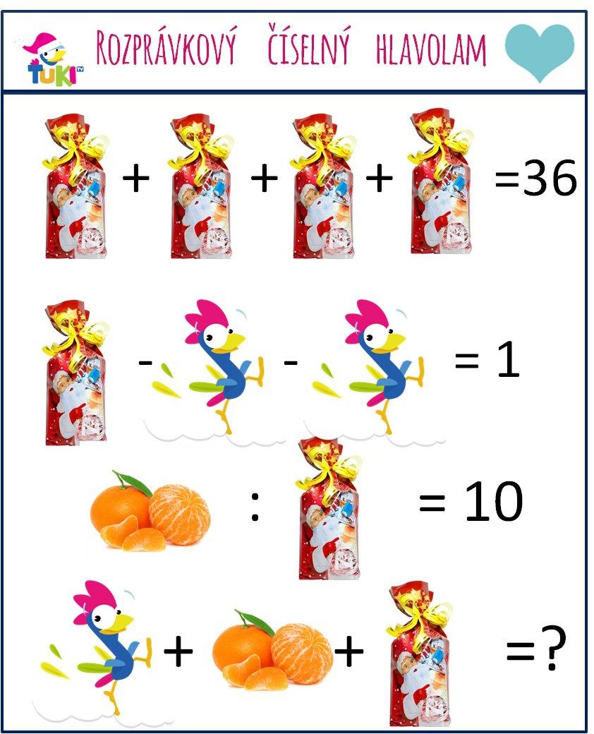 Dokážete pomocou jeho sladkého balíčka a chutných mandarínok zistiť výsledok dnešného matematického príkladu? 🙂