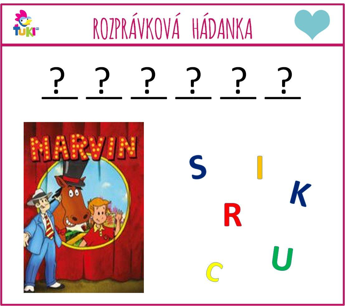 Krásne piatkové ránko 🙂 Posledná prebúdzačka za 2 #srdiecka ❤ pre tento týždeň je tu 🙂 Dnes to bude hra so slovíčkami - ideme hľadať, skladať slovo, ktoré má niečo spoločné s rozprávkou "Marvin, stepujúci koník", ktorú si môžete pozrieť na Ťuki TV napríklad aj dnes o 14:35 🙂