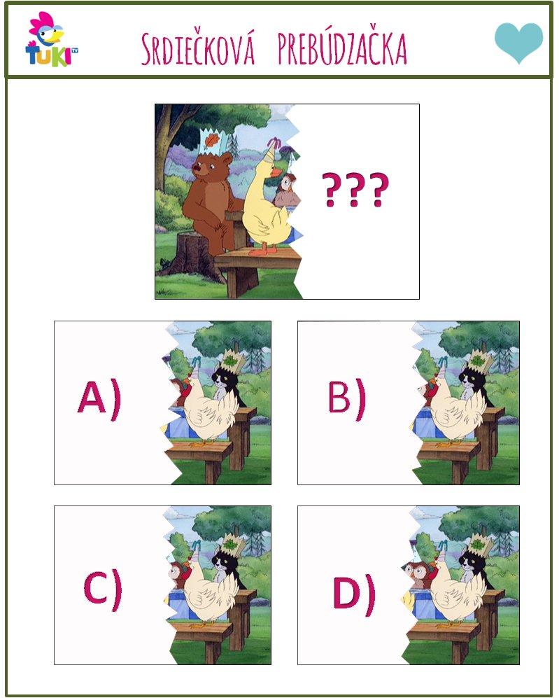 Krásne ránko 🙂 V dnešnej prebúdzačke za 2 #srdiecka ❤ ideme hľadať druhú časť obrázka z novej rozprávky na Ťuki TV "Malý medvedík". I keď sa možno na prvý pohľad zdá, že pasuje každý, nie je to tak. Treba si všímať detaily, pretože aj na nich záleží ;)