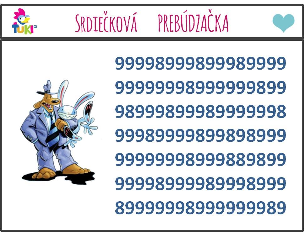 Krásne ráno prajem 🙂 Dnes máme piatok a navyše sviatok 👏 No prebúdzačka za 2 #srdiecka nebude chýbať ❤Tak trošku si precvičíme našu pozornosť - koľko číslic 8 nájdete medzi číslicami 9? 😉Prajem vám príjemný a oddychový deň 🌞