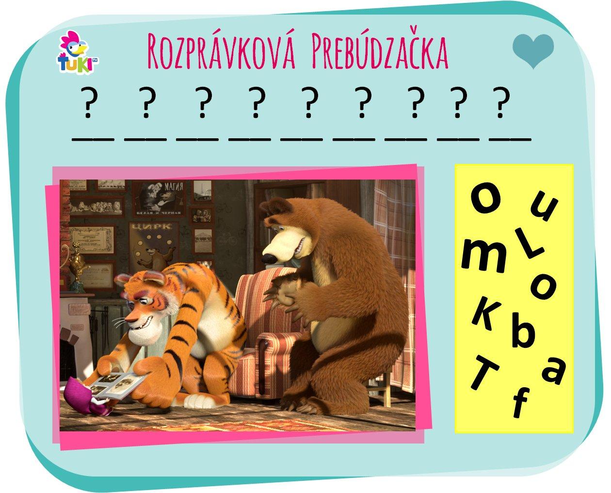 Pozorne si prezrite obrázok z rozprávky Máša a medveď a pokúste sa z neposlušných písmeniek poskladať slovíčko, ktoré s ním súvisí 😉