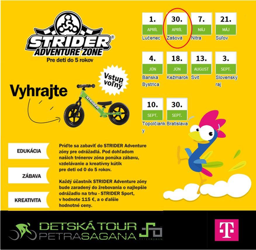 Máte doma malých Saganov? ;) Táto nedeľa bude v znamení dvoch kolies 🚲 Hlásia slnečné počasie, tak to po týchto daždivých dňoch treba využiť a stráviť deň aktívne a zábavne v spoločnosti celej rodinky. Pretekať môžu deti do 14 rokov, vrátane drobcov na odrážadlách 🙂 Ak žiadne nemáte, nič to, na mieste si budete môcť zapožičať super odrážadlá Strider ;)