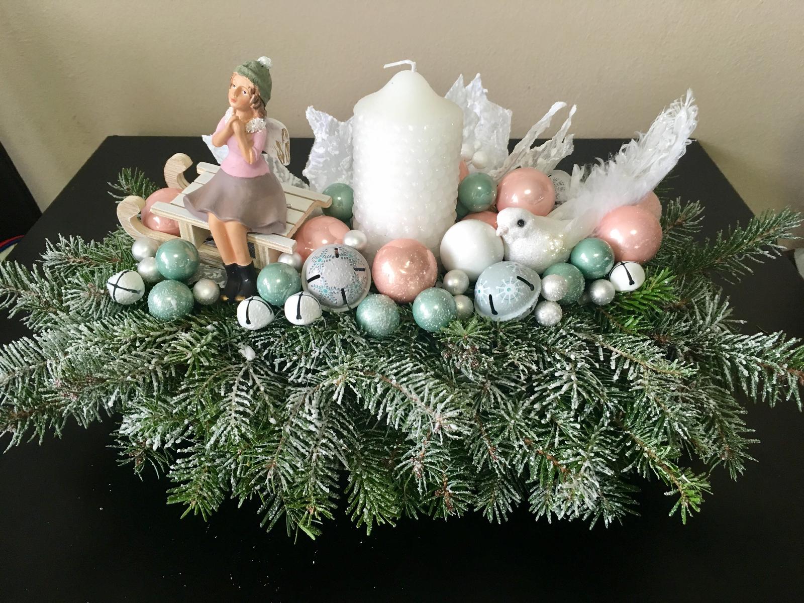 @poljana ihlicie som pichala do tej zelenej aranzovacej hmoty, a ozdoby som potom bud drotikom nastrkala, no tie velke som prilepila tavnou pistolou a tie sanky a dievca su tam len polozene napriklad 🙂 nech sa vydari, urcite ti to pojde od ruky ;) ale pozor, je to vysoko navykove ;