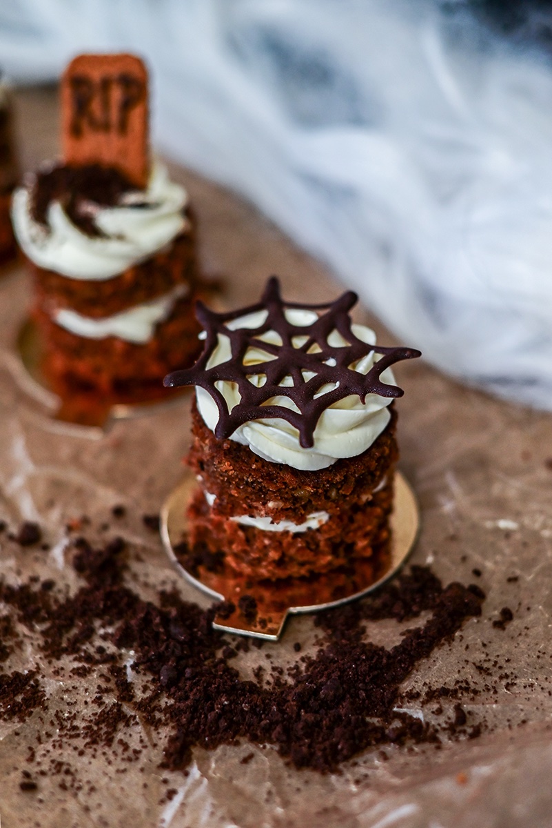 Mrkvové minitortičky s krémom a čoko pavučinkou 🕸️🕷️ Jesenný voňavý recept jednoducho zladený na Halloween tému 🕸️