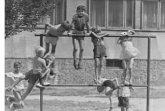 ... a my "na praker" 😁 ... Az mi je teraz nevolno, ked si spomeniem ako sme namiesto kobercov viseli dolu hlavou my (a bez drzania, len za nohy 😶), a kolko vsakovakych akrobacii na tom skusali bez nejakej vacsej ujmy 😶🌫️ ... Dnes by som uz na to odvahu nenabrala 🙃 ... (retro foto z netu)