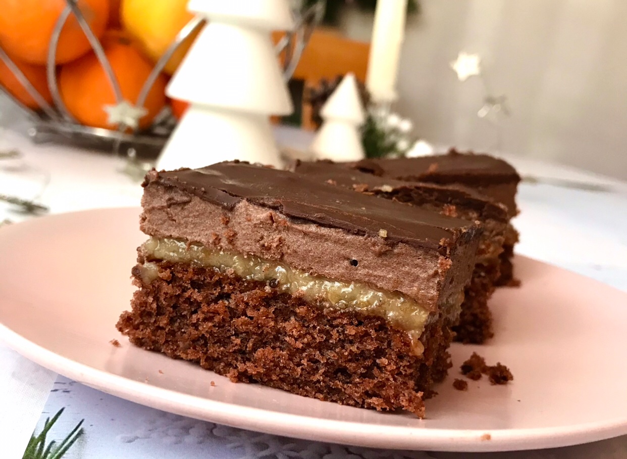Maslo necháme zmäknúť, pridáme polovicu práškového cukru a po jednom 4 žĺtky. Múku, pomleté vlašské orechy, preosiate kakao a kypriaci prášok premiešame. Do maslovej zmesi pridáme zmes múkovú, nakoniec zľahka vmiešame bielky, ktoré sme si vyšľahali zo zvyšným práškovým cukrom. Pečieme pri teplote cca 170°C a cca 25 -30 minút na plechu 30x30 cm.