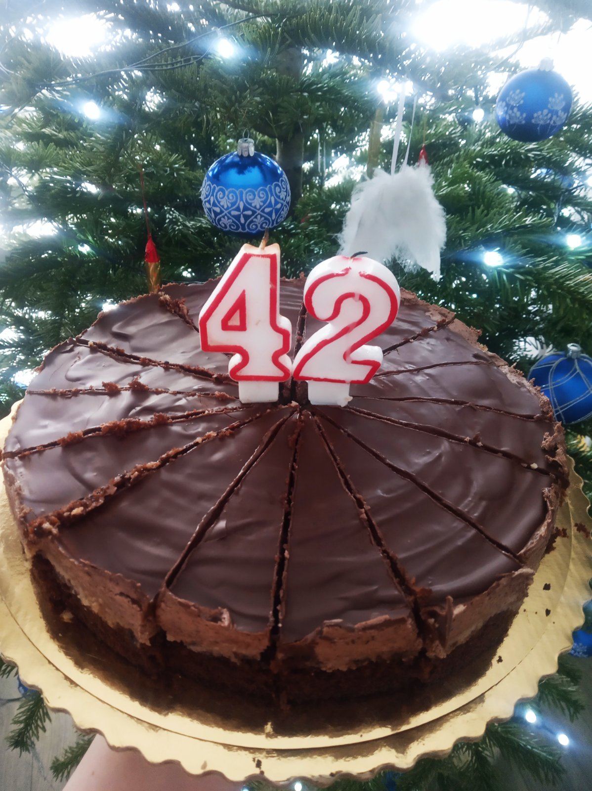 Šľahačku dáme zohriať, hneď ako začne vrieť, odstavíme a zalejeme ňou nalámanú čokoládu a maslo. Minútku počkáme a vymiešame hladký krém. Nalejeme na čoko krém a celý koláčik necháme dobre stuhnúť.
