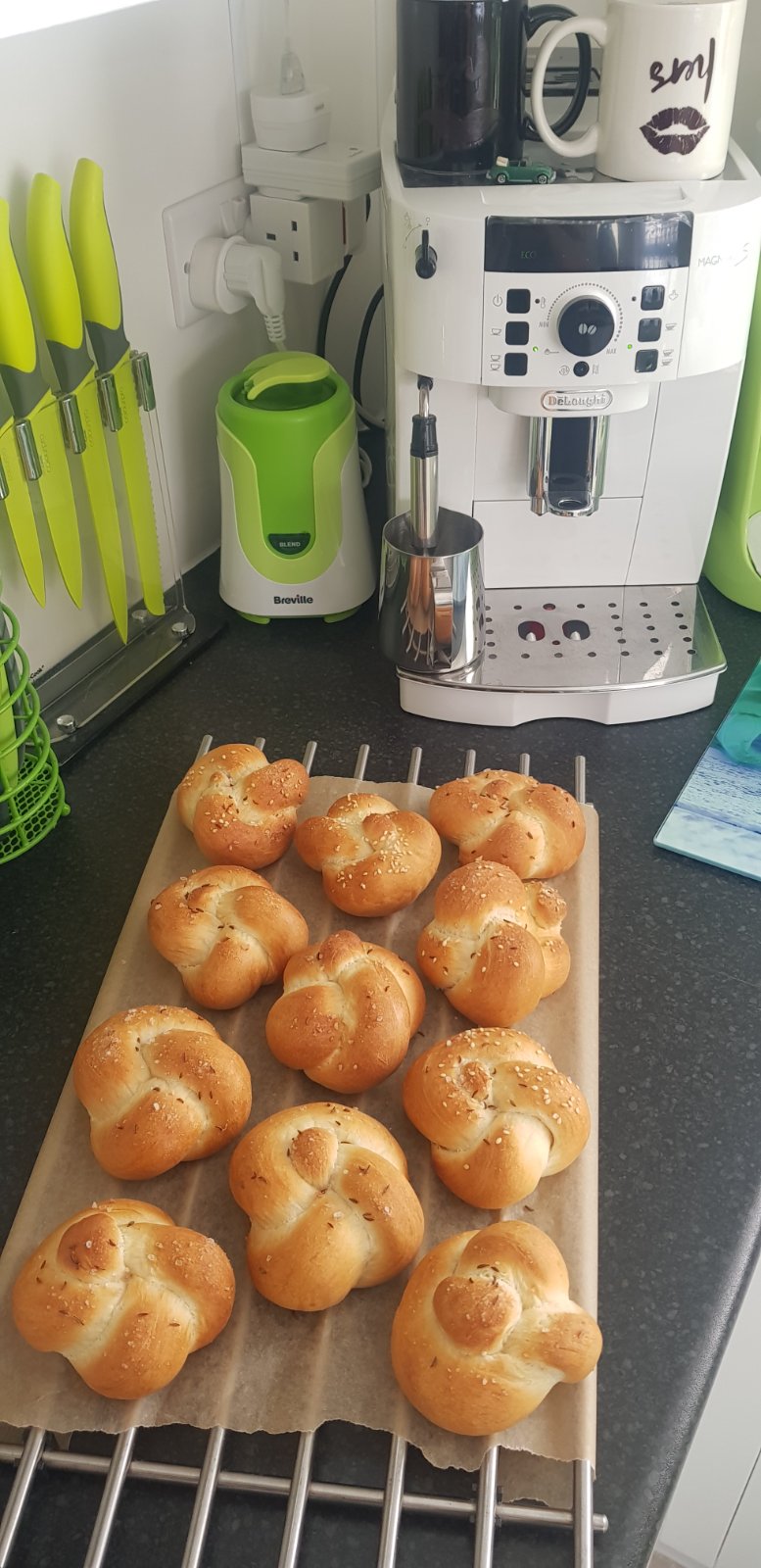 Ďakujem vám 🙂 chlapi si veru pochvaľovali 🙌🏻 Je to recept na rožky, robím podľa tohto od kalisovej https://www.instagram.com/tv/B9zc7M2lCBi/?igshi... 🙂 akurát som spravila tvar uzlíkov a po dopečení som ešte horúce potrela olivovým olejom s trochou soli a cesnakom 🙂
