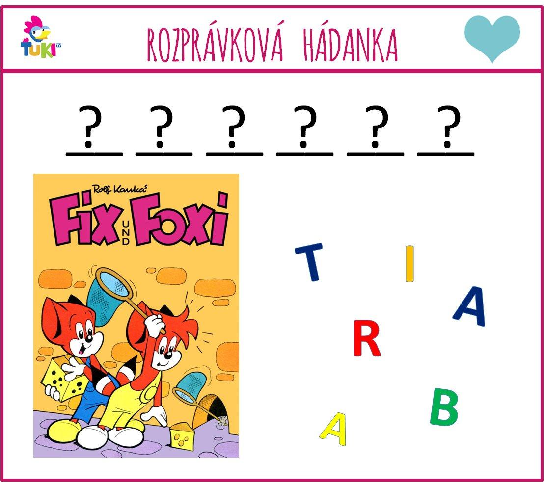 Prajem pekné ráno 🙂 Dnes si 2 #srdiecka ❤ zaslúžite, ak sa pohrajete so slovíčkami ;) Hľadáme slovo, ktoré má niečo spoločné s rozprávkou Fix a Foxi, ktorú môžete vidieť na Ťuki TV 🙂 Prajem pekný deň 🙂#magio_tv, #tuki_tv