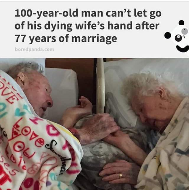 Presne takto si predstavujem "a žili šťastne až do smrti"... Po 77 rokoch manželstva nedokáže pustiť ruku svojej umierajúcej manželky... Smutné a tak krásne ❤️