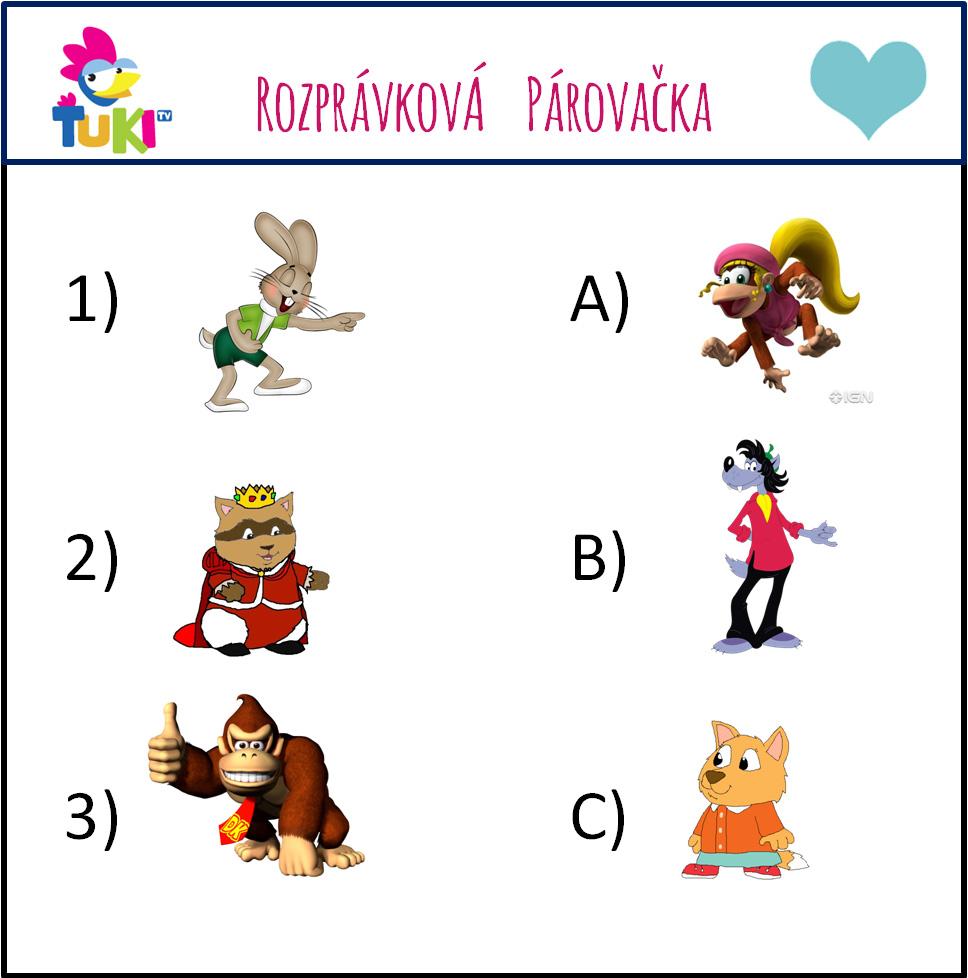 Ránko 🙂 Aj dnes tu máme prebúdzačku za 2 #srdiecka ❤ Vašou úlohou je správne spárovať postavičky z rozprávok z Ťuki TV No počkaj, Gorila v červenej kravate a Timothy ide do školy 🙂 Zvládnete to? ;) #magio_tv, #tuki_tv