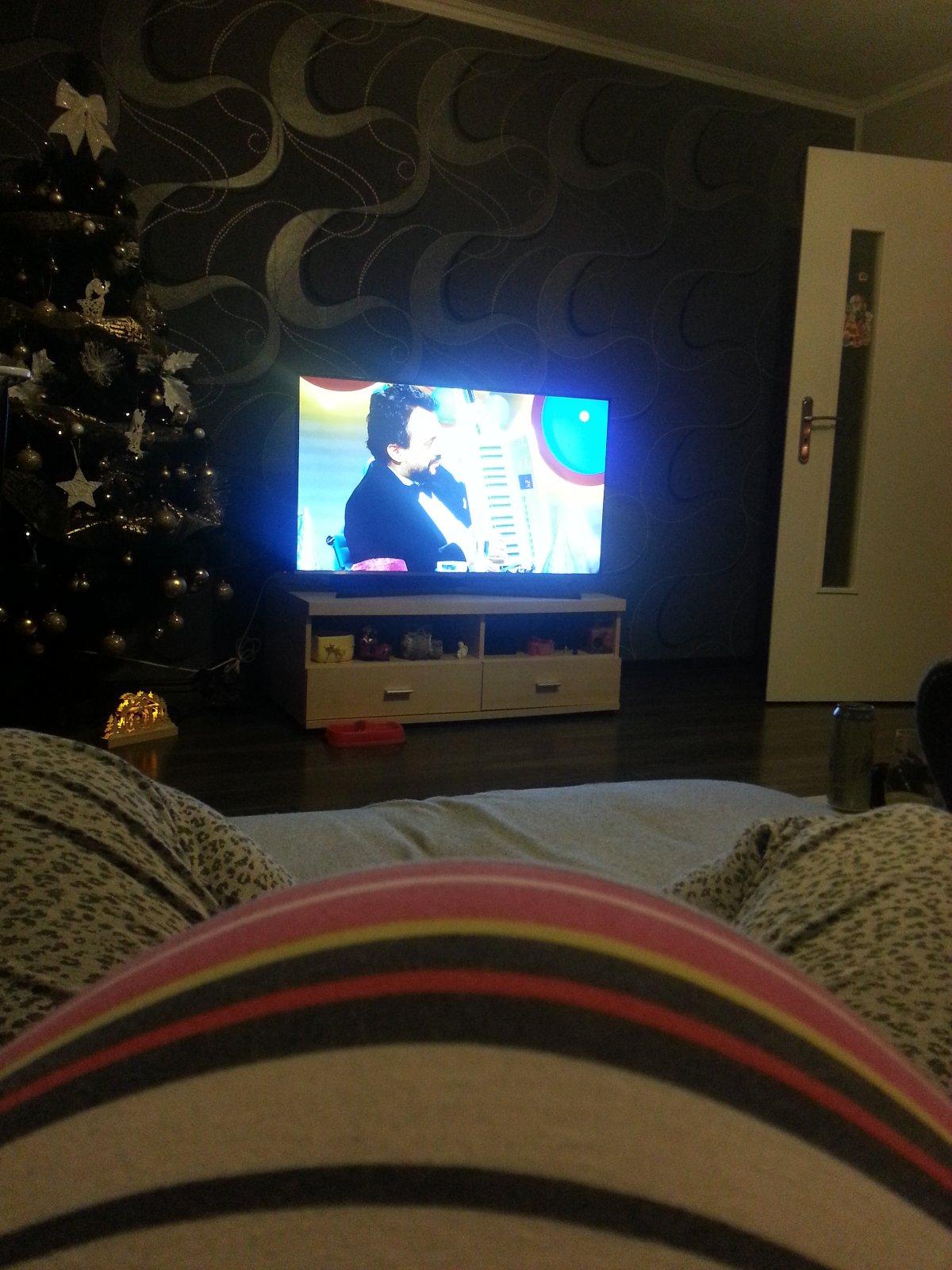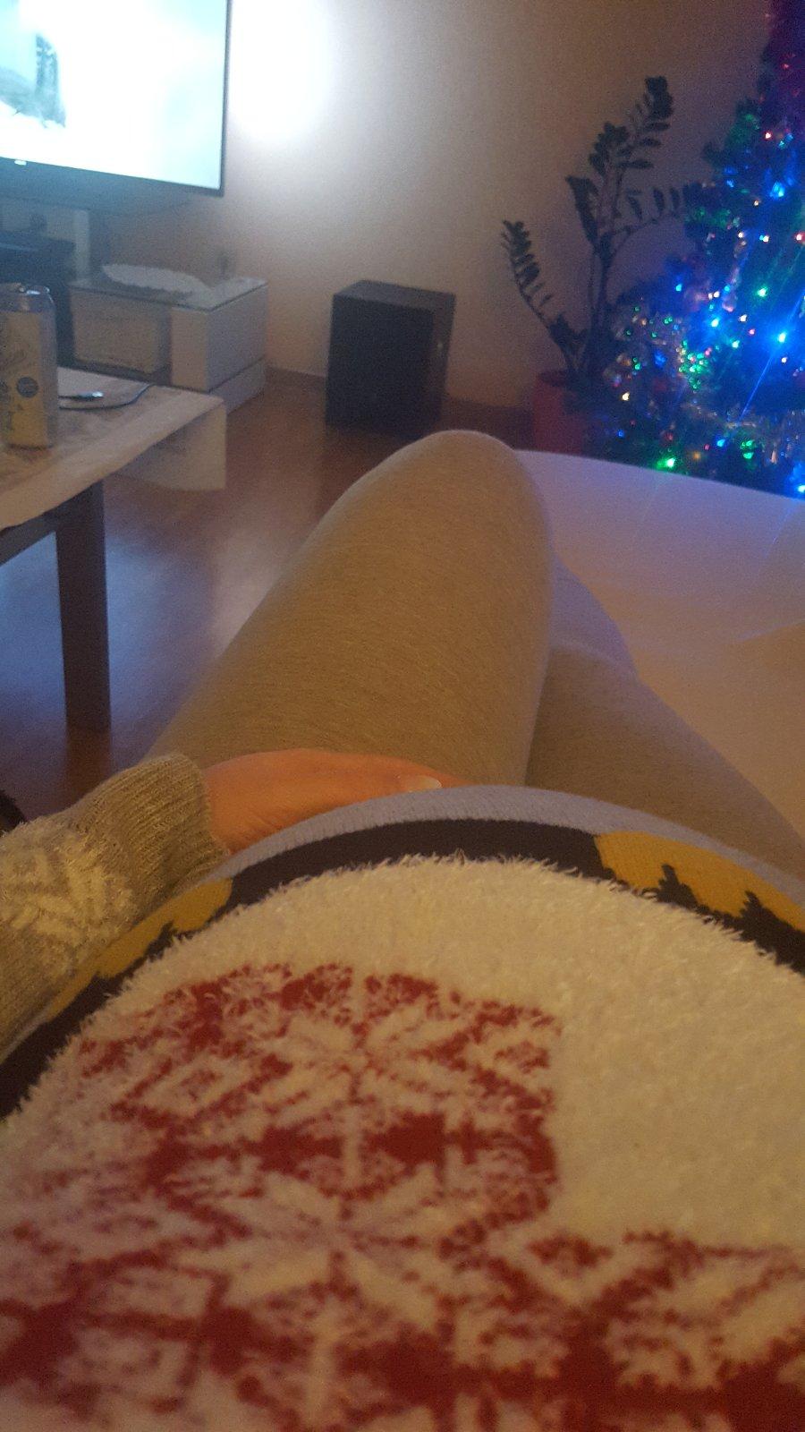 Pod dekou, telka, čaj a koláče 😉 len každú chvíľu pri malej, lebo u nás búchajú ohňostroje už od šiestej, bobko, sa budí ☹