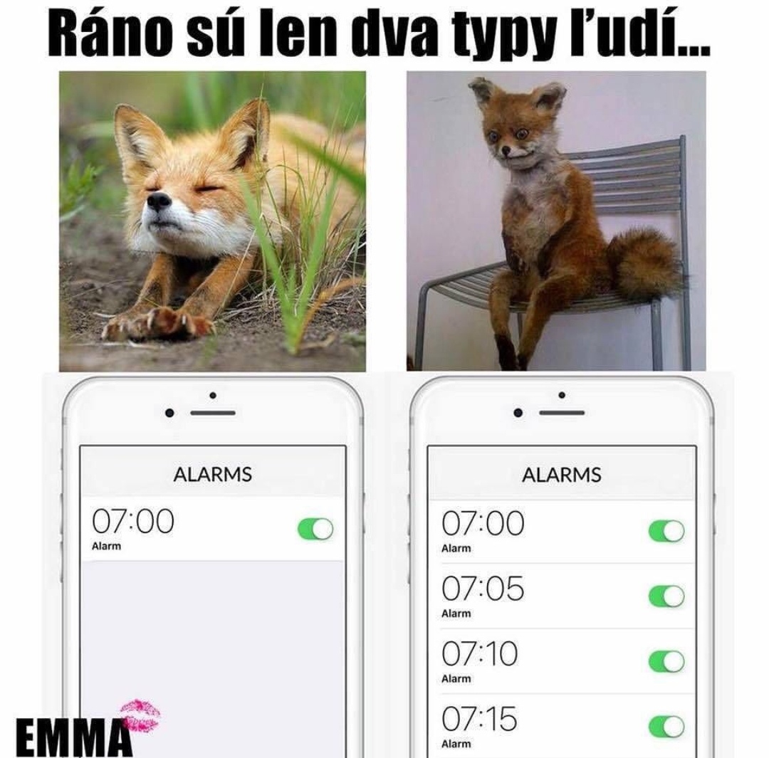 Hoci momentálne do prace nevstavam, ale chystám syna do školy a muž o vozí. Mam 5 budíkov 😂 a na môjho muža ešte obrázok nevymysleli. On ma síce niekedy iba jeden budík, niekedy 2-3. No vstane až keď ho ja 30x budím. Už som pár krát rezignovala a nechala ho spat. Mala som nachystané číslo na taxi aby som syna dostala do školy 😂😂